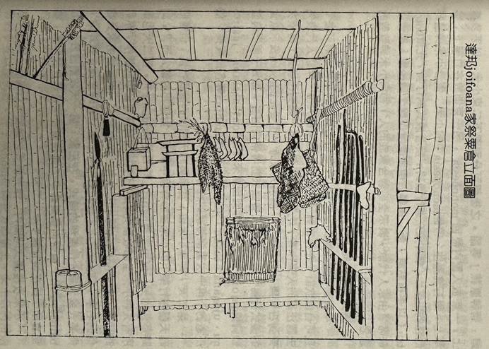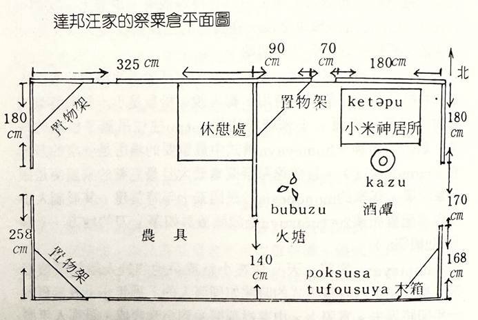 | 達邦汪家的祭粟倉平面圖。 | 達邦yoifoana祭粟倉立面圖。 |