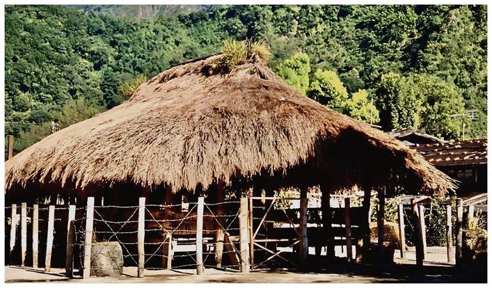 正如Fox所說,「房屋本身,而不僅僅是房屋內的物品和元素,也可以構成一個儀式化的有序結構。因此,這種秩序可以被視為宇宙秩序的表徵」(1993:1)。傳統民居有兩扇門(tsunsu,男性入口的正門和前門;miyatsumona,女性入口的後門)和一扇小門(tunkuyu),女性可以透過小門出去餵豬、倒垃圾或廢水(參見 Sayama 1919:58;Chijiwa 1938:64-68)。一般來說,從屋內面向正門,骨架和男性用具擺放在靠近前門的右側,而get’bu no pesia和女性用具以及廚房用具則擺放在左側,並圍繞著後門。這種居住空間佈局也體現在現代禁忌屋(王1995:70)。在放置神聖小米櫃的住宅以及禁忌之屋本身,烹調魚類都是禁忌。