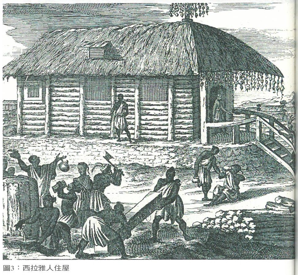 | 引用葉春榮鯿譯,初探福爾摩沙:荷蘭筆記(以夯土或壘石為基,椴木為構,以茅、芒、菅或棕梠葉覆頂) |