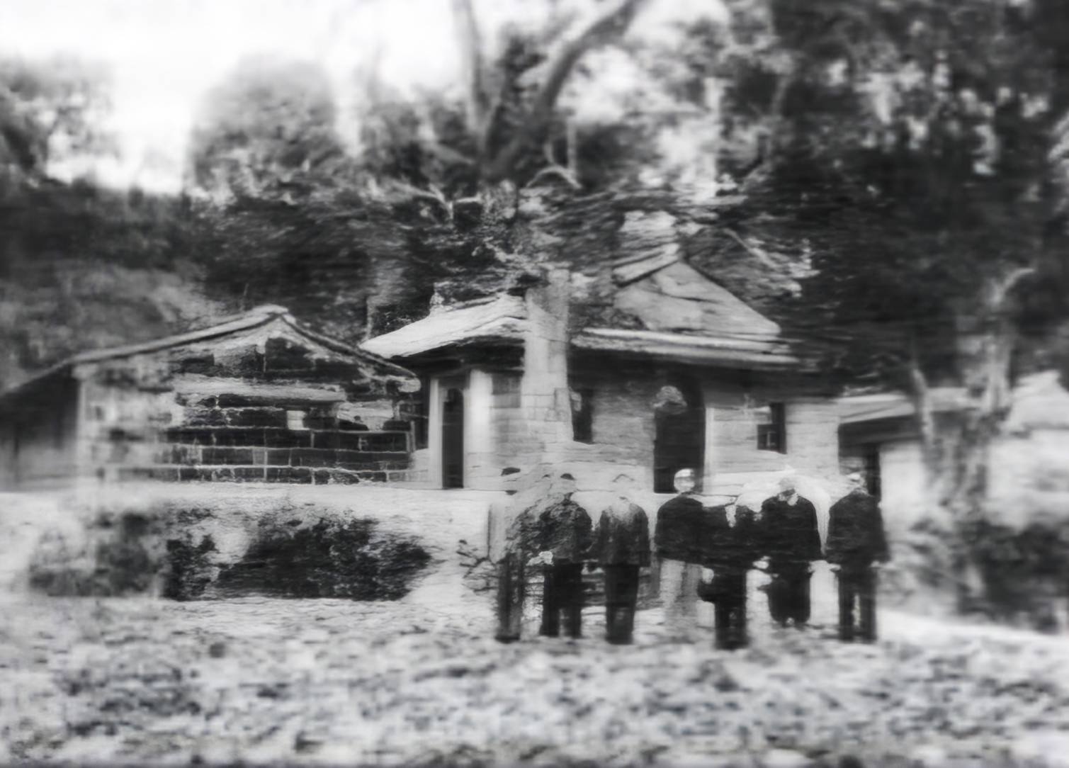 | John Thomson 於1871年4月13日攝於內門木柵教會(含附近共拍攝28張人物、房屋、風景、古道照片),當初教堂屋頂研判是茅草覆頂 |