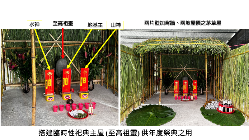 - 跳脫過往平埔與高山原住民族群信仰涇渭分明的樣貌,雖然祭祀主屋仍然平埔相同採用草屋(竹材、芒草、蒲葵…)