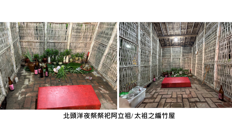 | 圖5:台東池上鄉慈善堂於2024年10月12日舉辦太祖聖殿祈恩消災法會,以竹材為結構主,編以芒草為三壁與兩坡頂。至高祖靈即為大太祖。 |