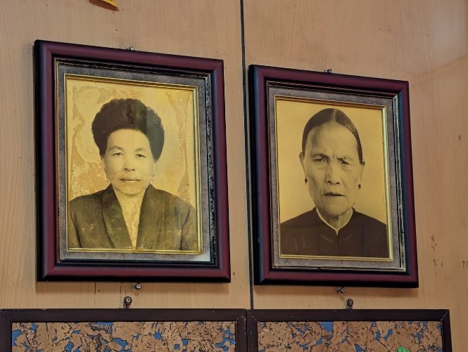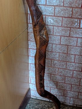 | 圖7-1:當年除攜帶太祖石外,並攜帶此太祖拐杖,較特別的是拐杖頭形似飾以眼睛如蛇頭,杖身飾以 “百步蛇紋” | 圖7-2:圖右為目前住持吳慶偉阿祖,於19世紀末自白河顯潭附近遷移至此落腳 |