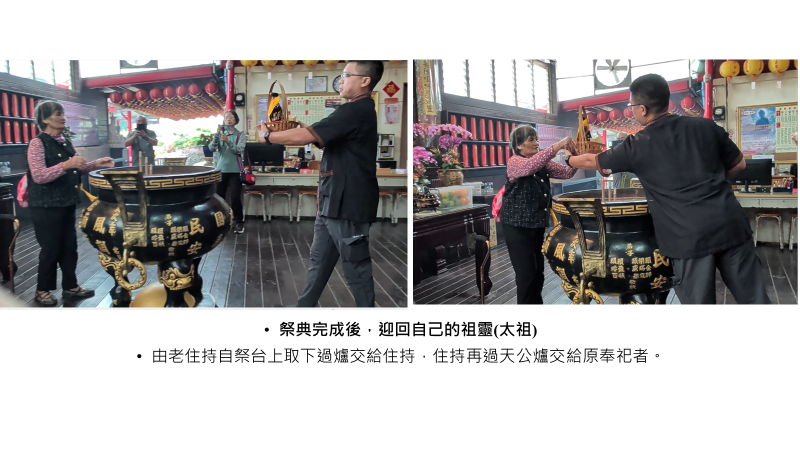 | 圖16:祭典完成後各分靈在慈善堂吳慶維住持協助迎請祖靈回去 |