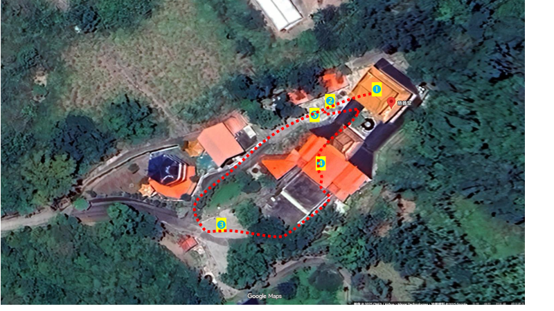 (一)空間場域:主軸以漢式民間宗教為主,大殿供奉阿彌陀佛、觀世音菩薩、藥師佛、地藏王菩薩……等。(圖8) 整合地方各族群之祖靈信仰則位於二進左次墊(圖8中編號)。住持曾祖母攜來之大武壠太祖石代表著至MuMu之祖靈,移出奉於祭祀草屋正中。如圖5左圖。
